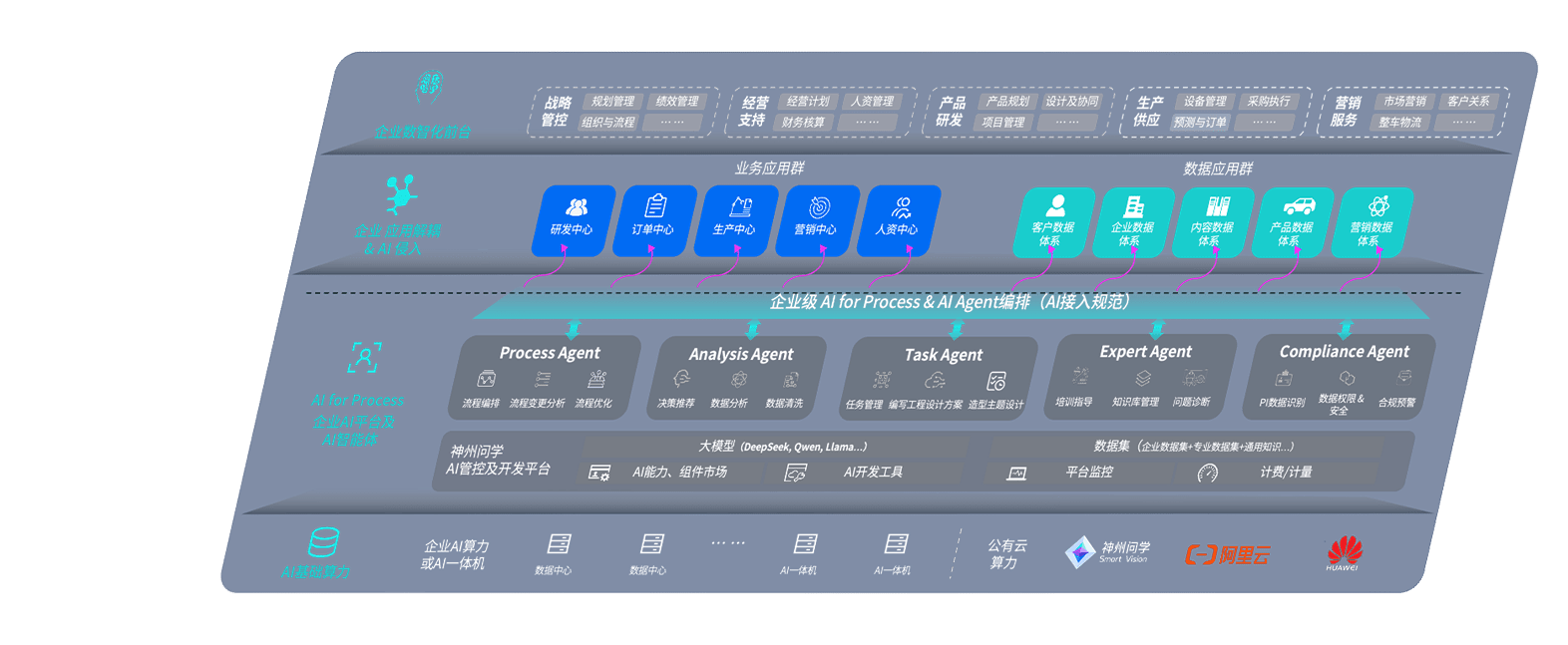 恒盛娱乐问学智车解决方案是一套基于AI技术的汽车行业智能化系统,,,覆盖从底层算力到顶层AI应用的全栈方案。。。方案由算力层、、、模型层和应用层组成:算力层,,方案支持多种一体机配置,,,,具备云端灵活部署、、、、多云适配以及动态优化计算资源的能力;模型层,,,,恒盛娱乐问学平台版提供了企业级AI应用一站式构建与管理平台,,,,支持基于后训练强化技术的汽车企业专属模型的训练、、、评测和运营;应用层,,,,恒盛娱乐问学DeepSeek版提供包括超级员工、、、、智能招采、、、智能营销、、智能客服、、、AI for BI等一系列解决方案,,,,可助力汽车行业实现数字化转型,,,让管理更智能、、响应更敏捷。。。